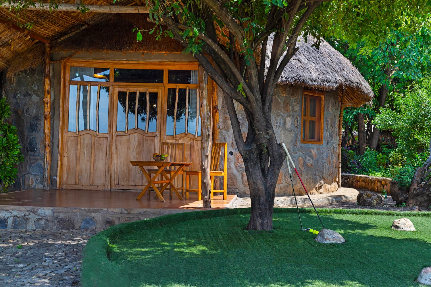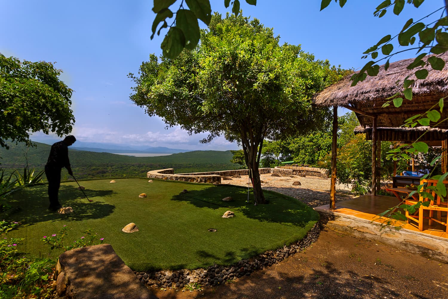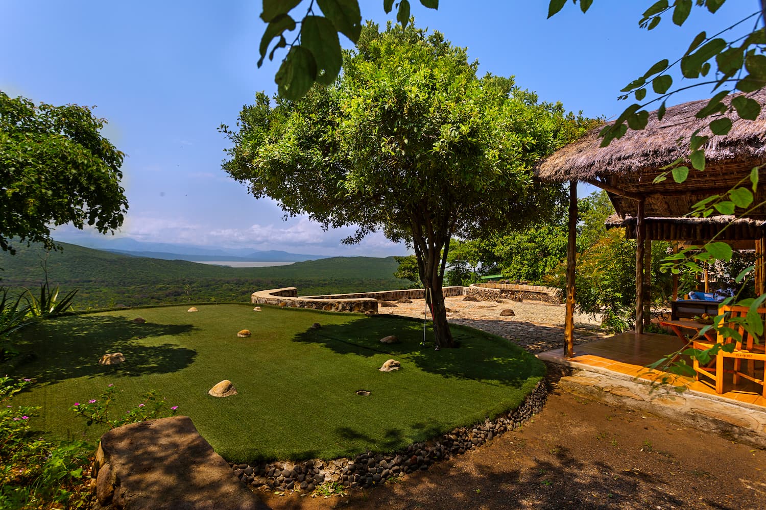 The presidential suite is constructed with traditional savannah grass thatch, blending seamlessly with the natural paradise landscape. This absolute beauty is a sight to behold! From the lounge and the cozy terrace areas, you will be facing breathtaking views of Lake Chamo & Lake Abaya as well as two mountains - Amaro & Sayamo mountains.