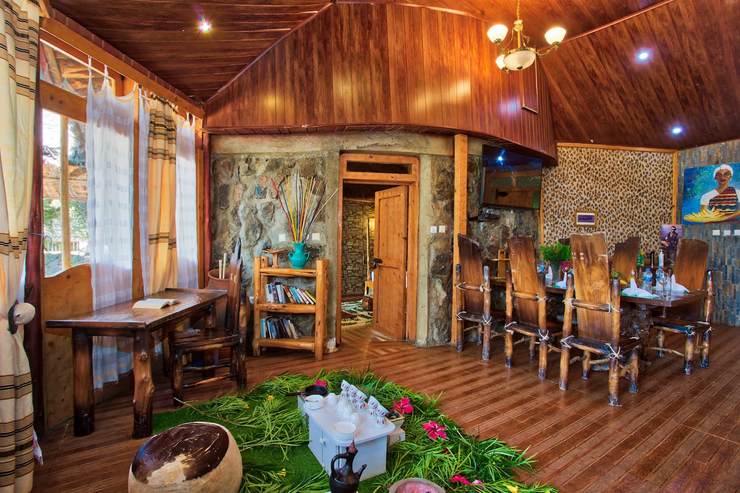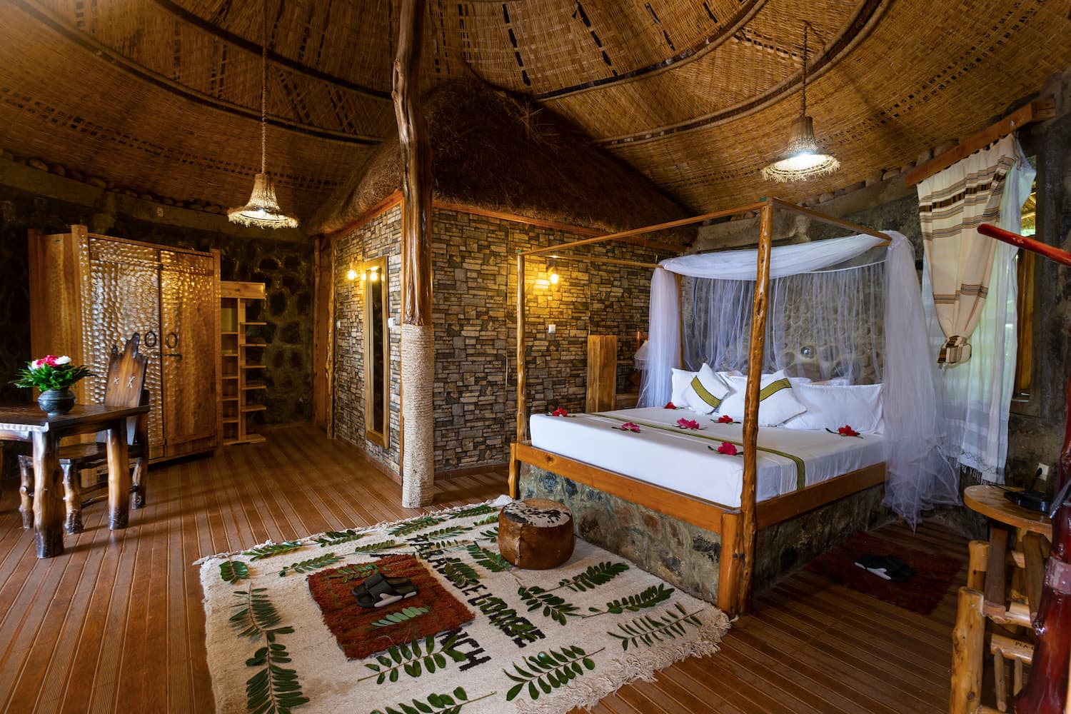 To top it up, our interior designed rooms and suites exude warmth and luxury coutersy of the unique craftmanship of the Konso & Gamo local people as well as pure cotton materials from the Dorze region. The hand crafted Juniper tree furniture brings back the spirit of an epoch long before the age of mass production. Each piece is a distinct creation. As individual as you are and a celebration of a time-honoured skill.