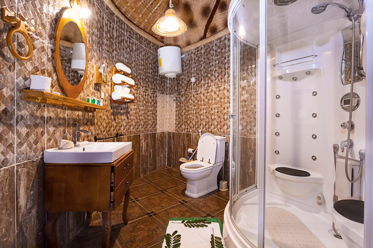 With two cozy bedrooms, a comfortable lounge area, and a terrace featuring wooden decks, guests can relax and unwind in style. The use of natural materials creates a serene and peaceful atmosphere, perfect for a restful stay. The combination of traditional design and picturesque views makes this a truly unique and unforgettable accommodation experience.