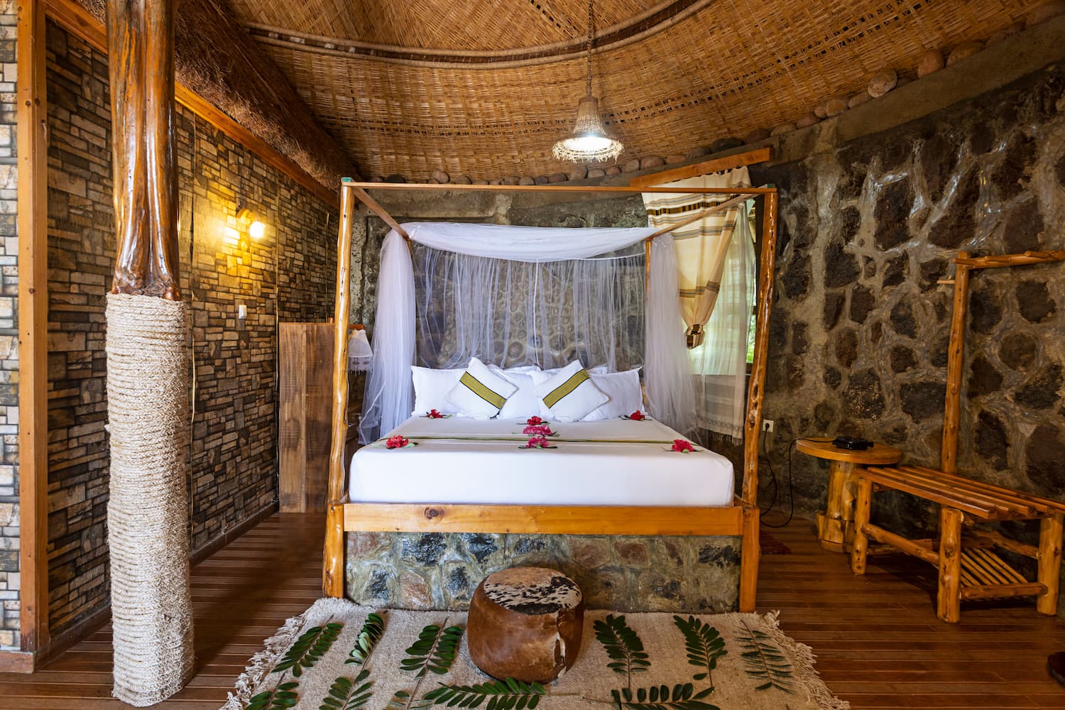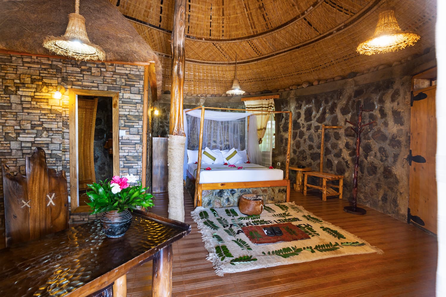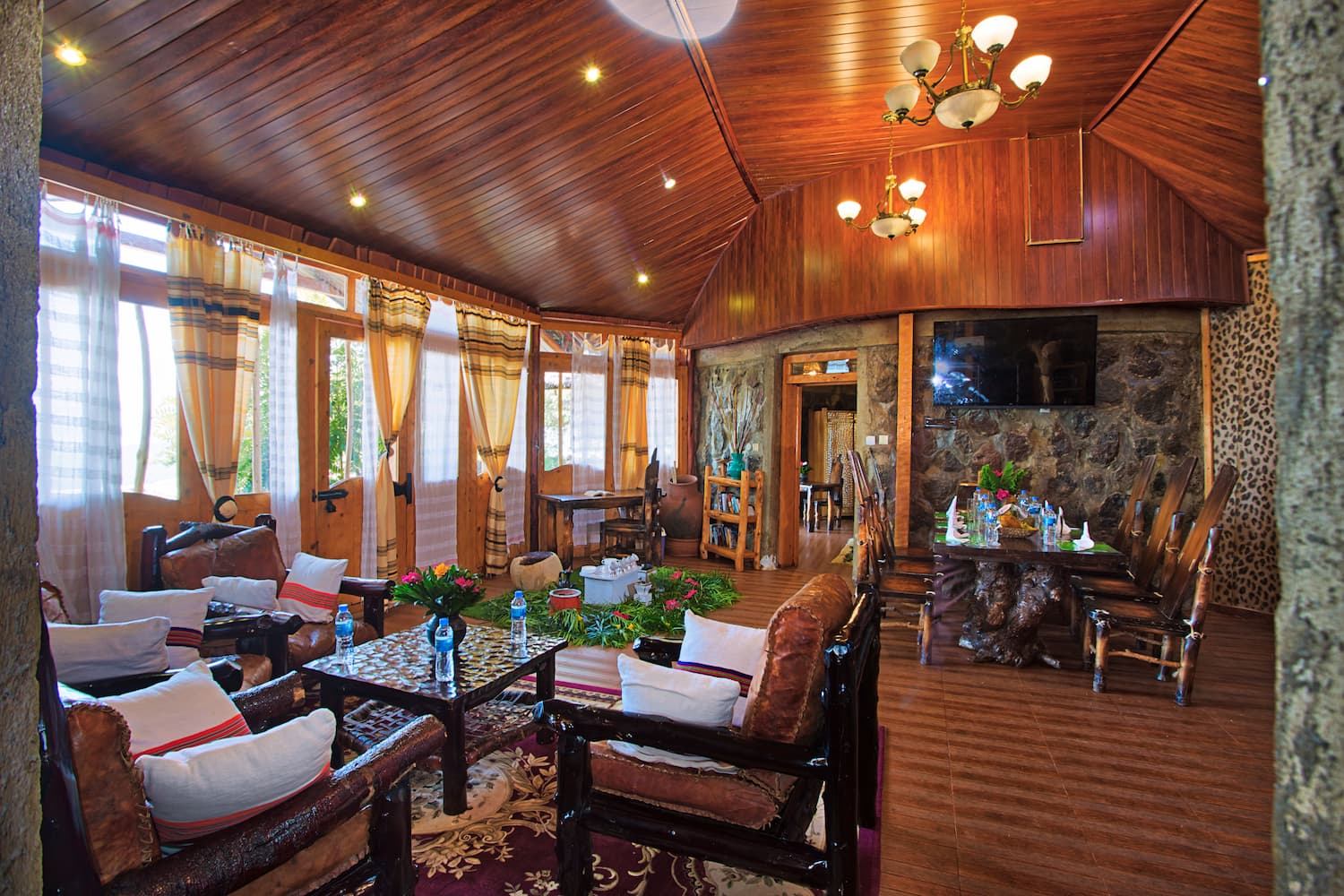 To top it up, our interior designed rooms and suites exude warmth and luxury coutersy of the unique craftmanship of the Konso & Gamo local people as well as pure cotton materials from the Dorze region. The hand crafted Juniper tree furniture brings back the spirit of an epoch long before the age of mass production. Each piece is a distinct creation. As individual as you are and a celebration of a time-honoured skill.