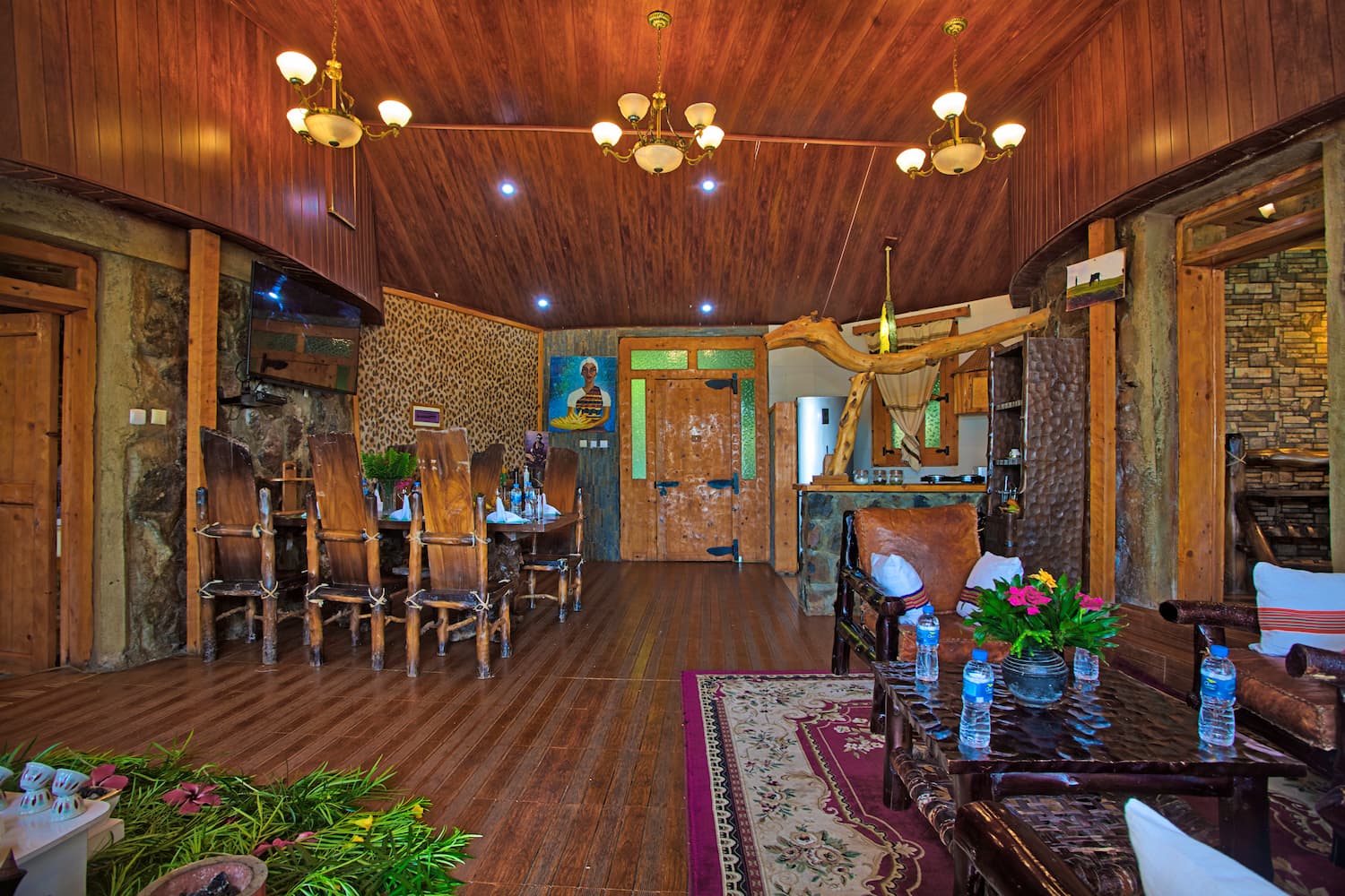 The presidential suite is constructed with traditional savannah grass thatch, blending seamlessly with the natural paradise landscape. This absolute beauty is a sight to behold! From the lounge and the cozy terrace areas, you will be facing breathtaking views of Lake Chamo & Lake Abaya as well as two mountains - Amaro & Sayamo mountains.