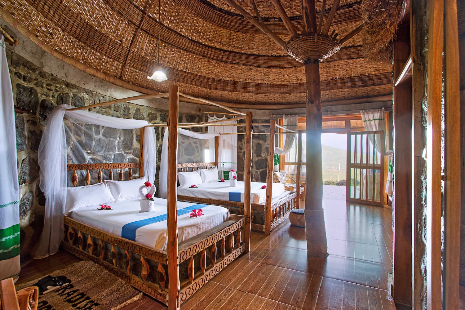 From pure cotton from Dorze region, we have spun woven bespoke rugs, bringing our theme of elegance and comfort right down to the floor of our spacious personal havens.